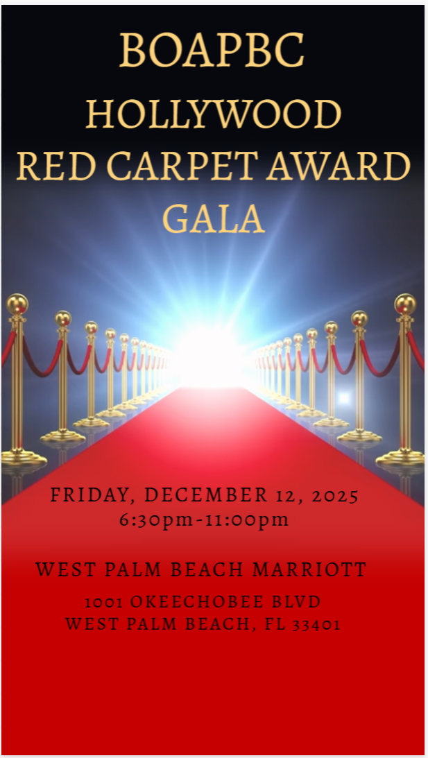 Friday, December 12, 2025 6:30pm – 11:00pm West Palm Beach Marriott 1001 Okeechobee Blvd, West Palm Beach, FL 33401 Register @ https://boapbc.regfox.com/2025-boapbc-award-gala